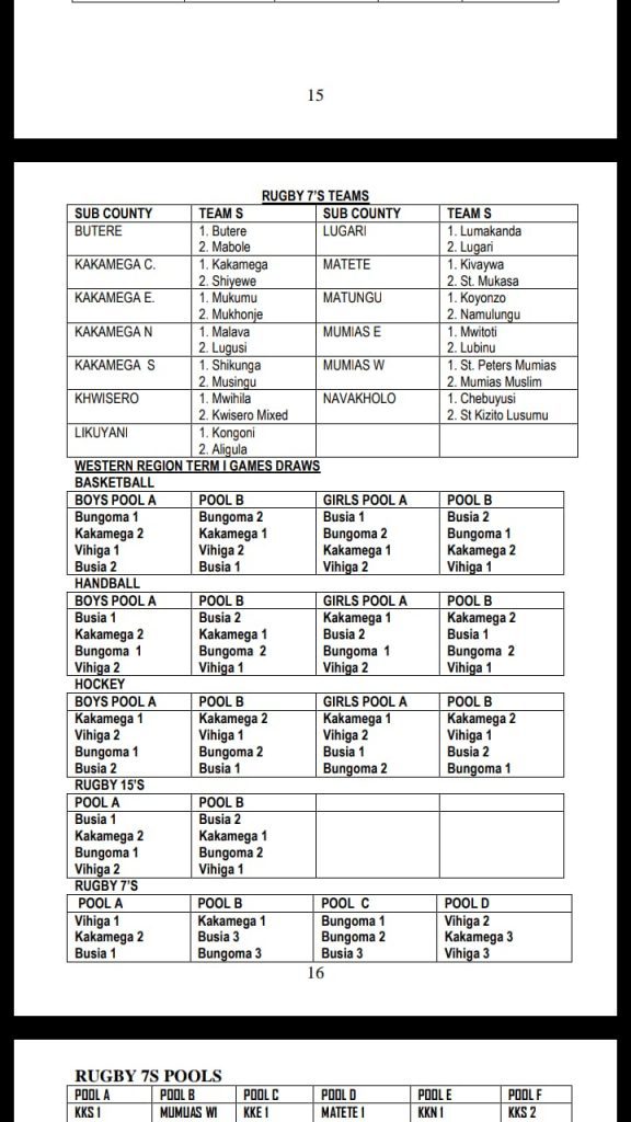Here are the teams proceeding to the Western Region games finals from Bungoma county: